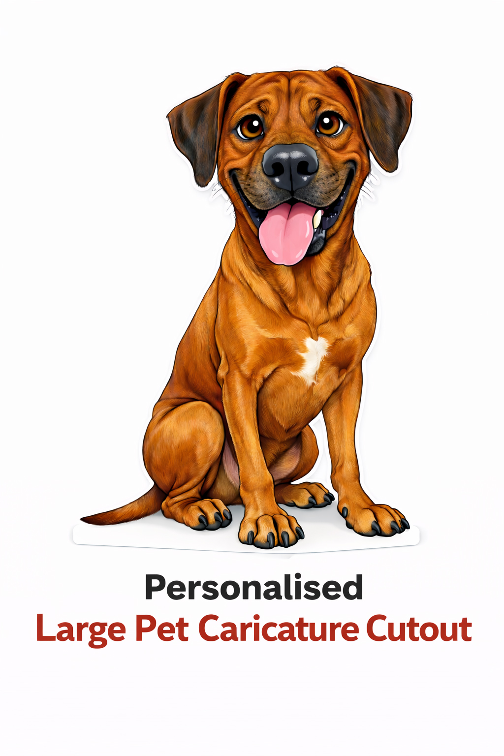 Celebrate your furry best friend in a big way with our Personalised Large Pet Caricature Cutout, its’s 3ft tall and created from your favourite dog, cat, or pet photo.